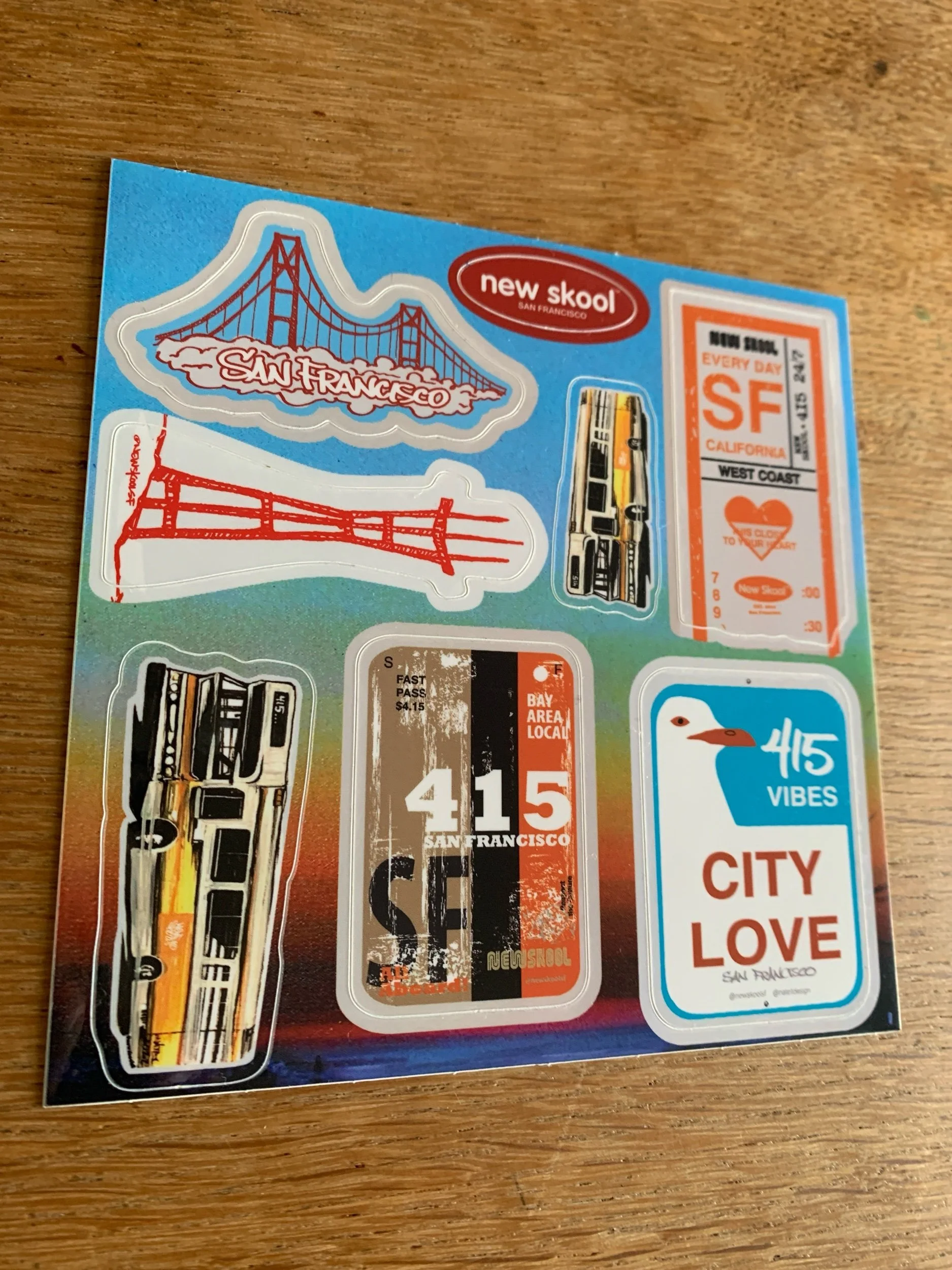 STickers & magnetsDesigned by SF Artist and Designer Nathan Tan and made here in the Bay Area. Family-friendly. Local approved. STICKERS & MAGNETS Categories: Select a Category STICKERS MAGNETS BUNDLES STICKERS MAGNETS BUNDLES CA Love Sticker from $4.00 San Francisco 415 CA Watercolor Sticker from $4.00 San Francisco Icons Watercolor Sticker from $4.00 415 Sticker from $4.00 New Skool Cable Car from $4.00 New Skool Muni Bus from $4.00 New Skool Bizzarrrt Train from $4.00 New Skool Muni Train from $4.00 White Rabbit Candy Vinyl Magnet $5.00 San Francisco Fog Vinyl Magnet $5.00 The New Skool Sticker Sheet from $10.00 The Half n Half Sticker from $4.00 Wood Magnet Bundle (4 designs) from $36.00 Wood Golden Gate Bridge Cloud Magnet from $12.00 Wood Sutro Cloud Magnet $12.00 Wood San Francisco Bus Magnet from $12.00 Wood Transfer Magnets from $12.00 Transfer Sticker from $4.00 Daly City Street Sign Sticker from $4.00 Daly City 280 Sticker from $4.00 City Love Sticker from $4.00 SF Fog Sticker from $4.00 Soy Sauce Sticker from $4.00 White Rabbit Sticker from $4.00 Ggb Sticker Set $10.00 Sweet, Salty & Spicy Sticker Set $10.00 3” New Skool Local's Local Icon Sticker from $4.00 Old School Fast Pass (Blue/gold) from $4.00 Old School Fast Pass Sticker from $4.00 4” Glow in the Dark Transfer Sticker from $5.00 Holographic 4” Transfer Sticker from $5.00 Ggb Sketch Sticker from $4.00 3.5” Sunset San Francisco Sticker from $4.00 Ggb Perspective Sticker from $4.00 Sutro Sketch Sticker from $4.00 Fast Pass Transfer Sticker Set $7.00 Sriracha Sticker from $4.00 3” Fast Pass Magnet from $5.00 Haw Flakes Magnet from $5.00 Transfer Magnet from $5.00 The Local's Local Icon Magnet from $5.00 Bus Magnet from $5.00